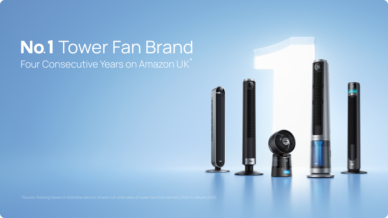 ¹Source: Ranking based on Stackline data for Amazon UK retail sales of tower fans from January 2022 to January 2026.