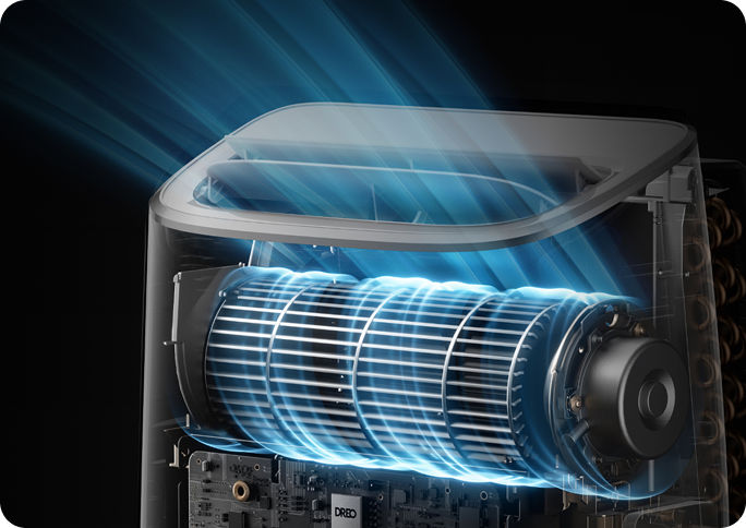 Uses an Air Booster to amplify air volume, an advanced DC motor to ensure efficient circulation, a Bionic Blade to create a powerful vortex, and an Spiral Grill to direct airflow precisely for balanced cooling.